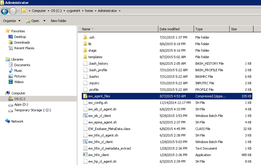 The Agent is required to be installed on each server where EPMware either imports or exports metadata directly. These files are placed under the home directory of the CYGWIN user.
